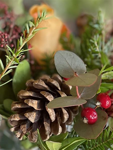Our festive Cinnamon and Pine Dinky Bottle Set has landed! With Cinnamon coloured roses, cinnamon scented pine cones and skimmia, this makes a lovely Christmas gift.
